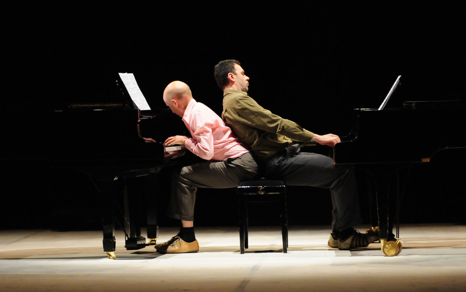 "Vom Trio schindelkilliusdutschke wurden die mit Stimmgabeln ausgestatteten Zuschauer auf der Bühne zur gemeinsamen Stimmabgabe von heimischen Klassikern à la "Hänschen klein" gebeten."